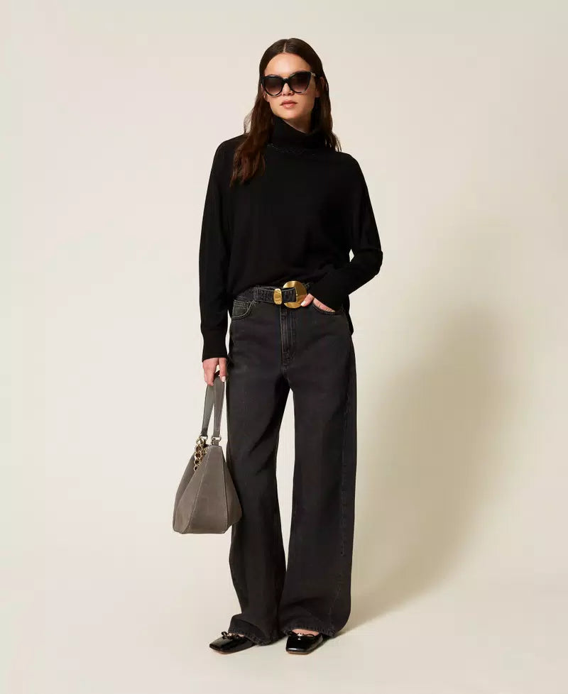 Maglia dolcevita lurex con treccia Twinset