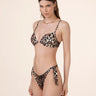 Bikini push-up con slip regolabile in tessuto Lycra maculata. Capo dotato di imbottitura interna estraibile e chiusura con gancio.