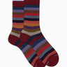 Calze corte da donna in cotone, realizzate in Italia. Incredibilmente morbide al tatto, create per una donna dinamica che non rinuncia ad un dettaglio di stile. La fantasia a righe pari nei toni del bordò le rende originali ma riconoscibili. Adatte ad un look formale o stravagante. La scritta Gallo è ricamata in punta a contrasto.