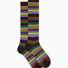 Calze lunghe da donna realizzate in Italia in cotone elasticizzato. Morbidissime al tatto e create per adattarsi perfettamente ad ogni tipo di look. L'iconica fantasia a righe multicolor sui toni del marrone, rende queste calze immediatamente riconoscibili. Il brand Gallo è ricamato in punta a contrasto.