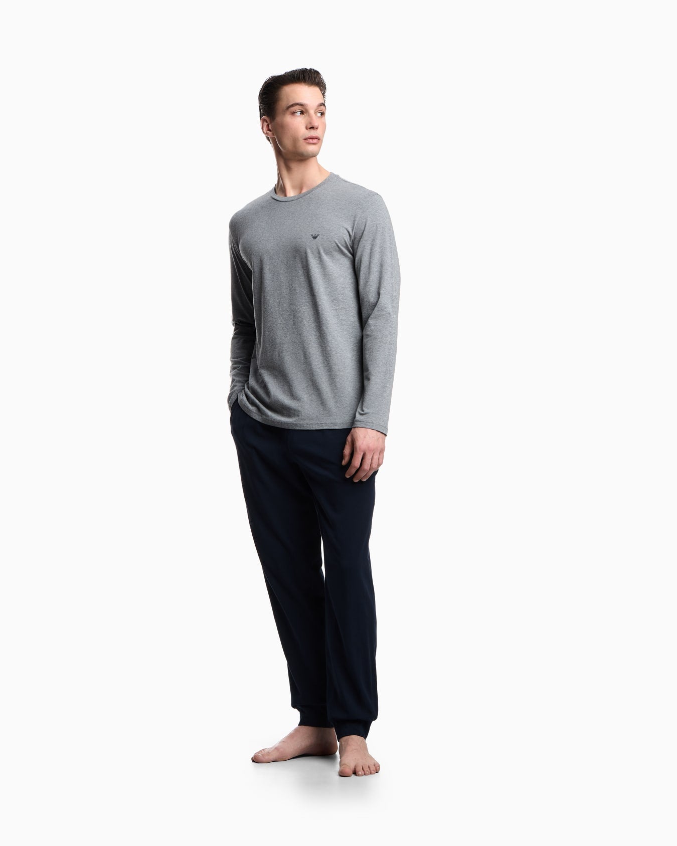Pigiama realizzato in jersey di cotone, composto da maglia girocollo e pantaloni a vita elastica logata. Logo aquila sul petto.