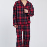 Pigiama a quadri in check Blu e Rosso, Maglia a camicia aperta sul davanti , Pantalone stessa fantasia check con polsino elastico.