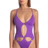 Costume intero in morbida lycra con applicazione di micro borchiette che tratteggiano una palma. Scollo a V con anella centrale per esaltare il décolleté, i tagli sul davanti formano petali di un fiore. Facilmente abbinabile a una gonna pareo dello stesso materiale o a un gonnellone ampio per uno stile sofisticato. Ampia scollatura sul retro con laccetti sottili che si incrociano per una migliore vestibilitá. Slip copertura regolare.