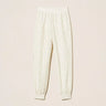 Pantaloni in pizzo con fianchi rifiniti da piping in tono. Hanno elastico in vita, tasche alla francese ai fianchi, fondo a costine, fodera in cotone stretch, placchetta logo a cuore sul retro, linea joggers.