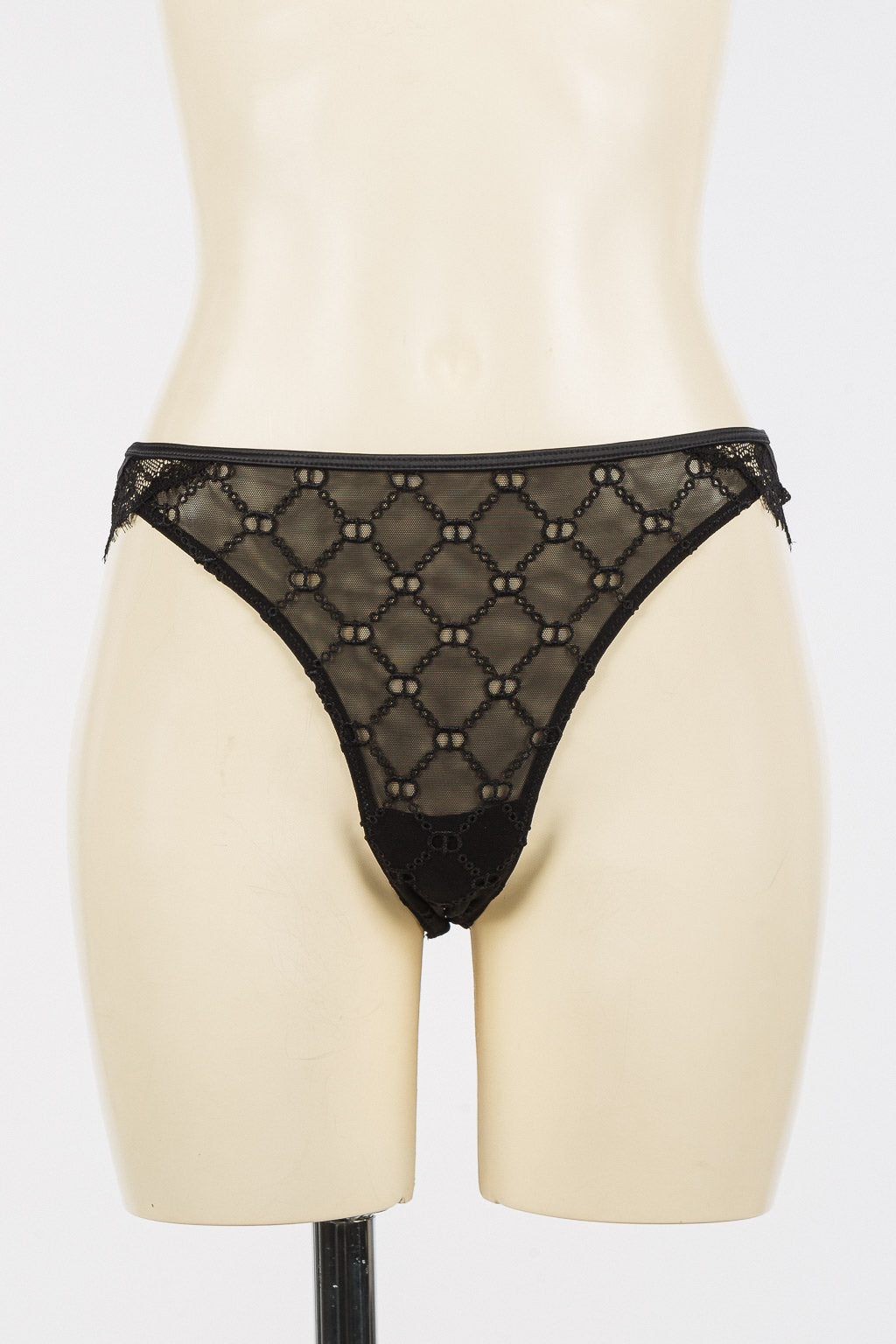 Slip in tulle ricamato con Oval T, inserti in pizzo smerlato e profili in raso. Ha il logo a cuore in metallo con fiocco in raso e pizzo sul retro e la fodera in tulle.