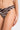 Slip brasiliana in charmeuse stampata a fantasia animalier con fodera interna in tulle a tinta unita, fiocco in organza e logo a cuore in metallo al centro sul retro.