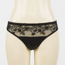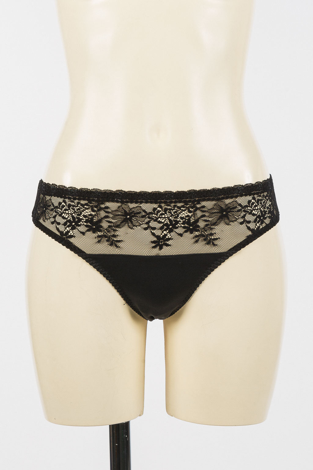 Slip in pizzo smerlato a motivo floreale e charmeuse di microfibra, elastico smerlato in vita, fiocco in organza e logo a cuore in metallo al centro sul retro.