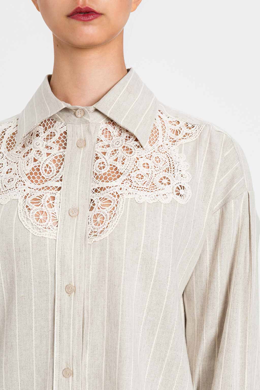 Camicia in misto lino jacquard con pizzo Twinset