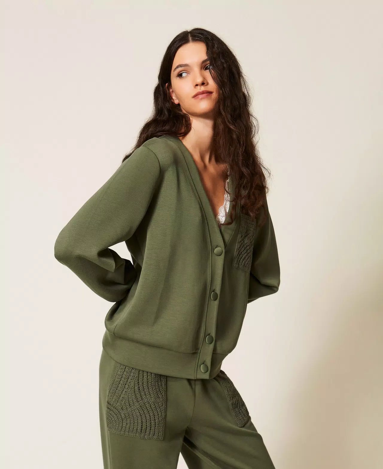 Cardigan in tessuto scuba con crochet Twinset
