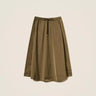 Gonna longuette in taffetà con elastico impunturato in vita e coulisse con terminali in metallo. Ha tasche inserite ai fianchi tagli laterali impunturati, orlo alto al fondo, placchetta logo in metallo sul retro, linea ampia.