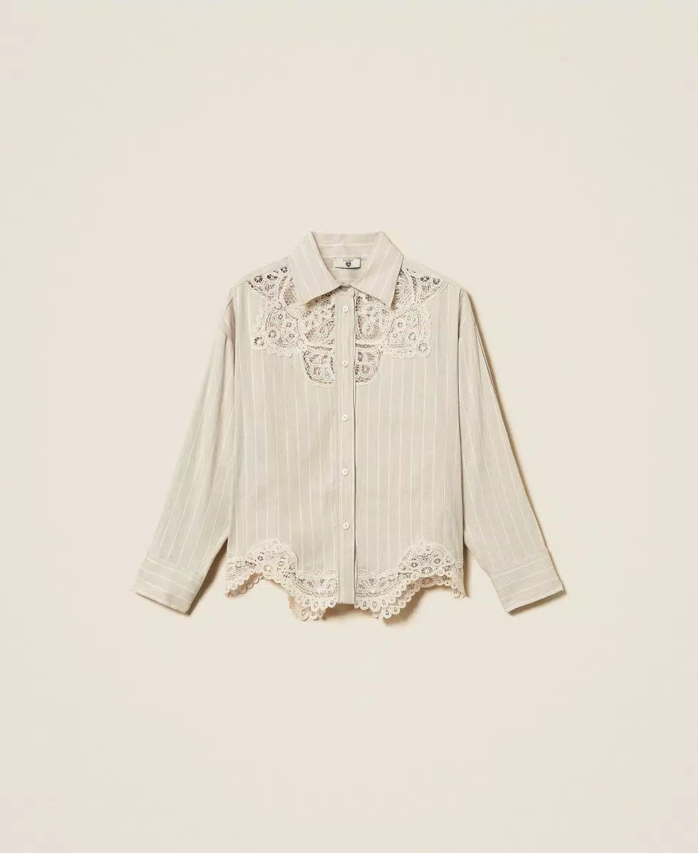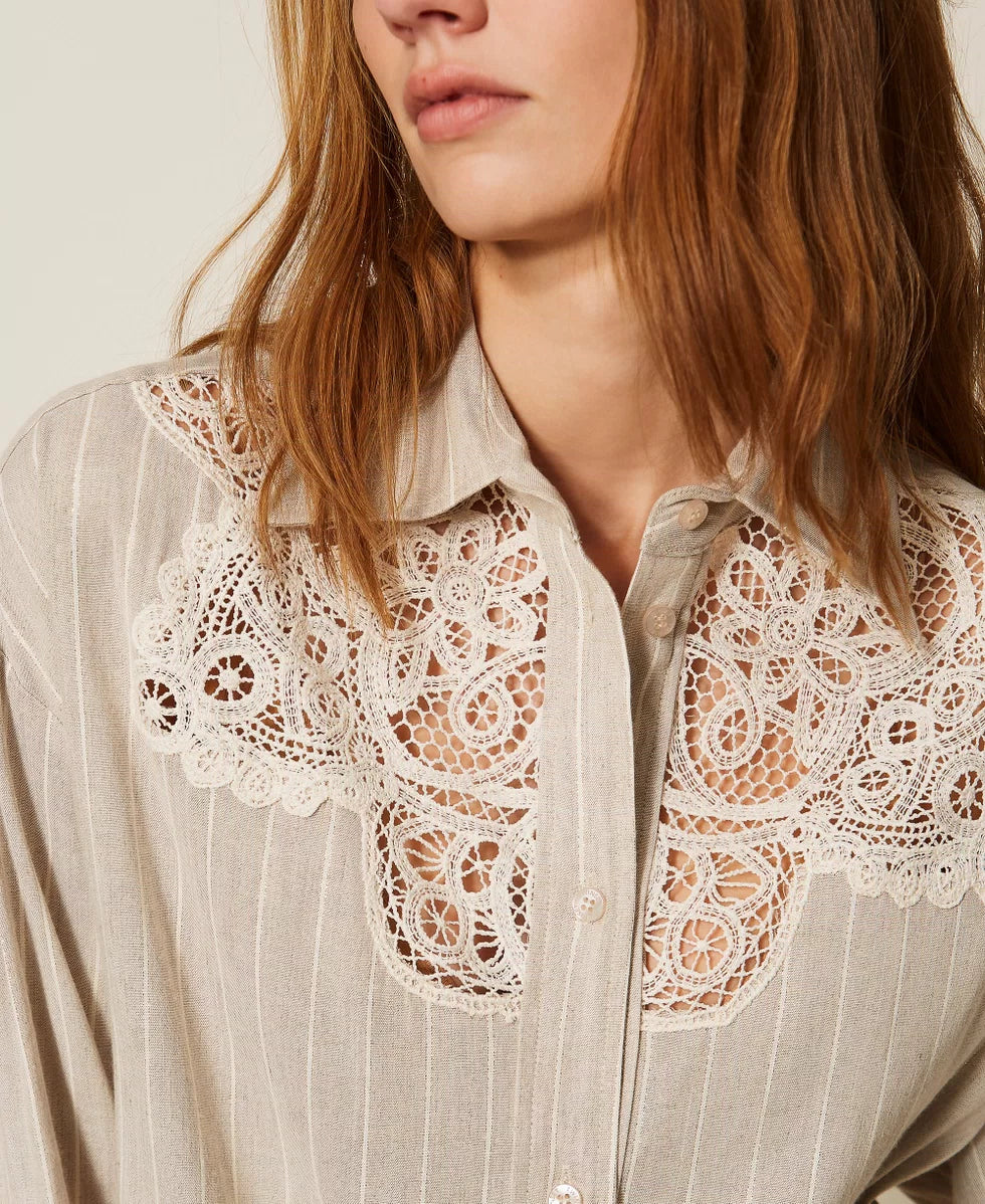 Camicia in misto lino jacquard con pizzo Twinset