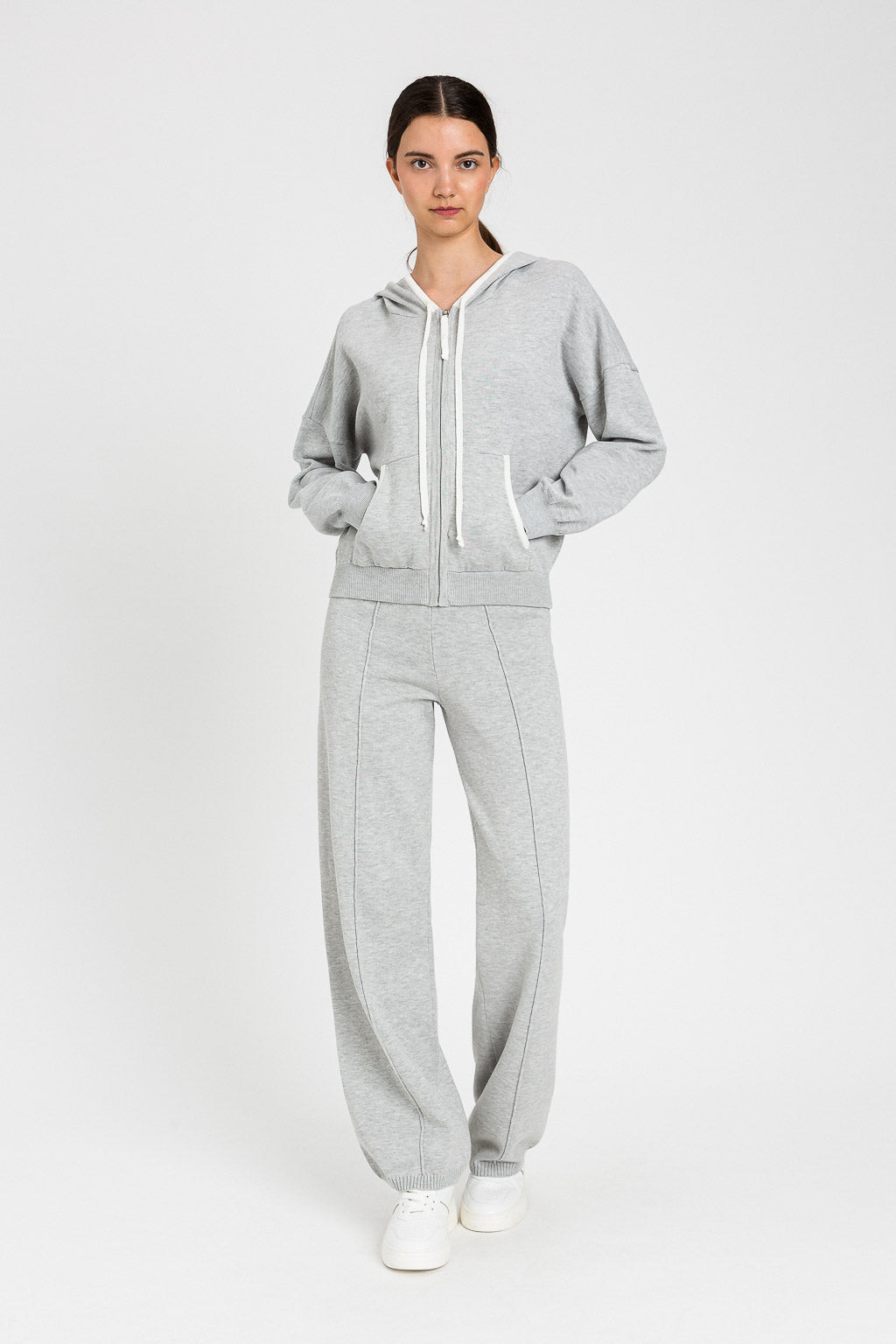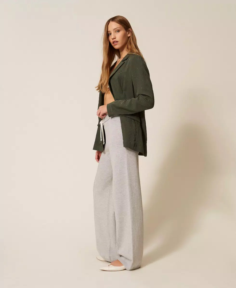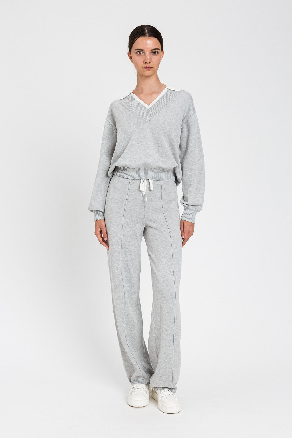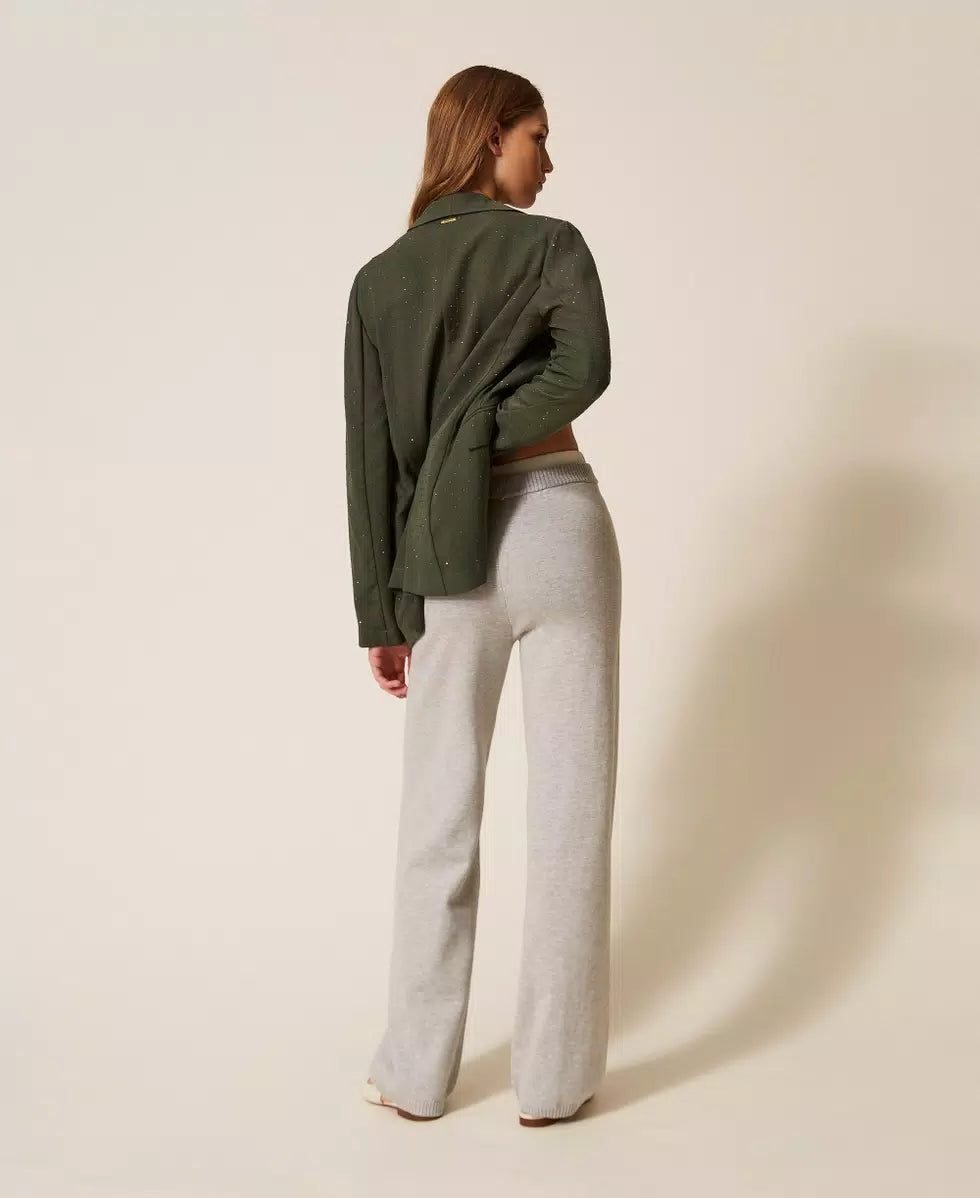 Pantaloni in filato di cotone e viscosa con inserto in colore a contrasto in vita, elastico inserito e coulisse, logo a cuore in metallo sul retro, linea morbida.