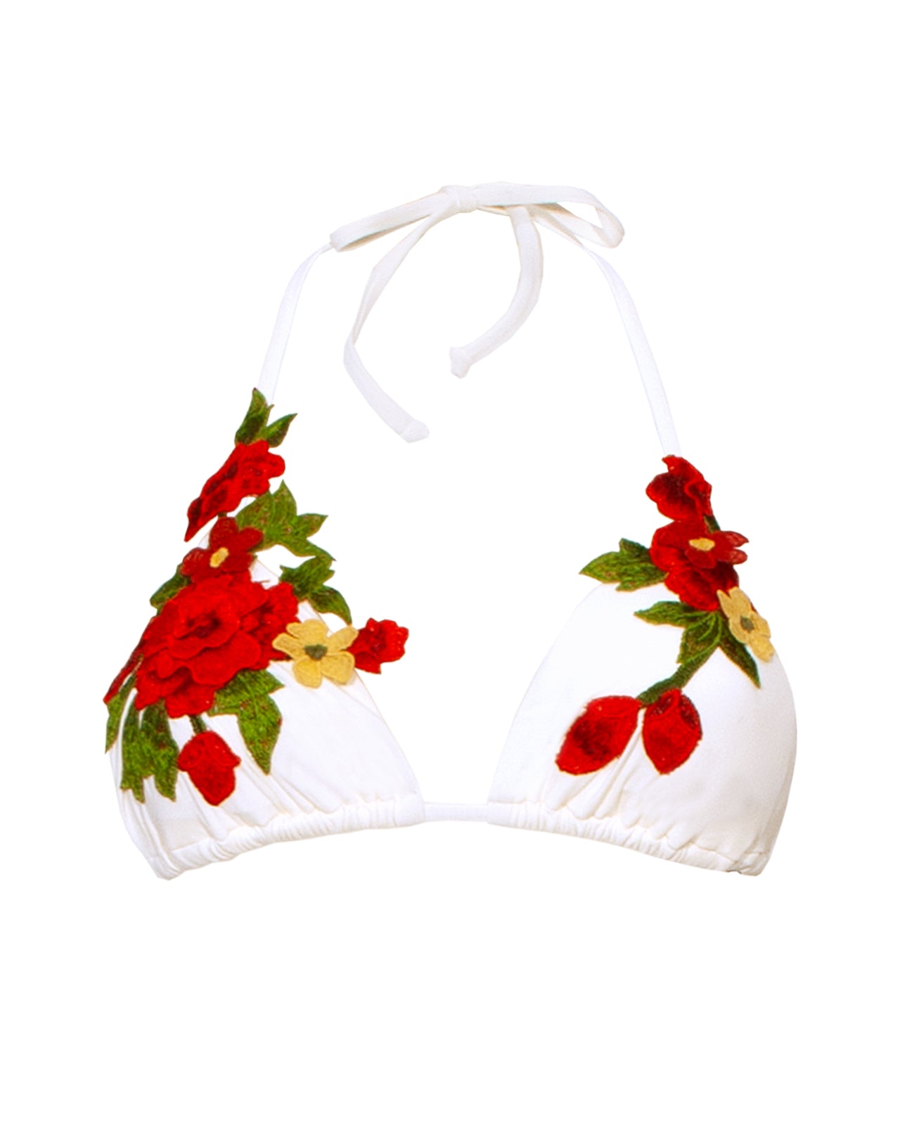 Triangolo imbottitura estraibile, con fiori in macramè applicati.